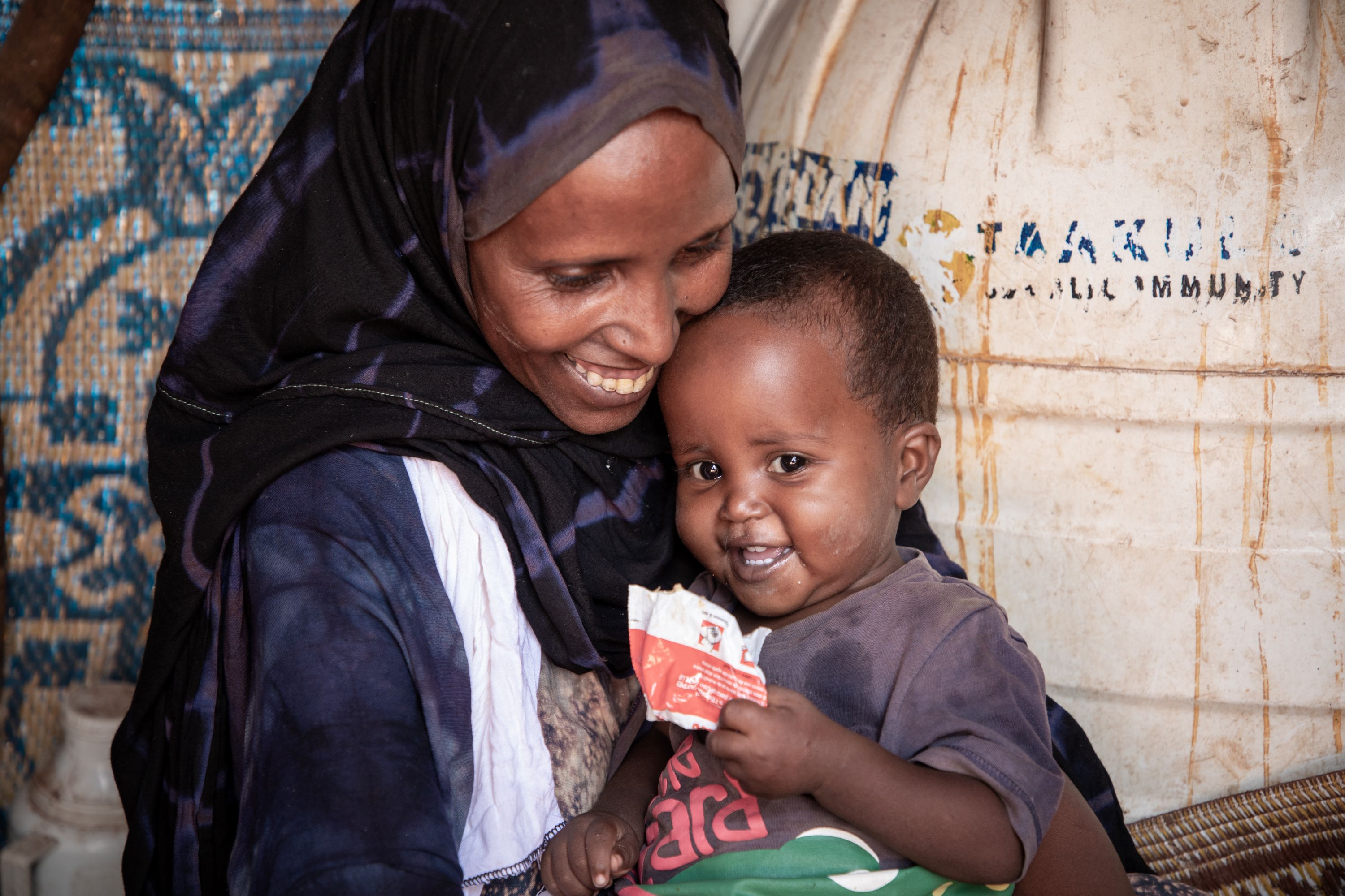 東非極端乾旱讓牧民失去收入和食物來源。Ayan飼養的羊和山羊全部死亡,她無法賺錢獲得食物及營養哺乳8個月大的兒子Hamdan。孩子因營養不良引發肺炎,生命垂危。